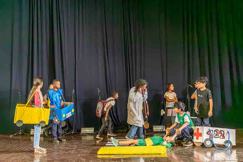 Em seguida, as crianças foram protagonistas de três peças teatrais com os temas “O Tomatinho Vermelho no Trânsito”, “No Trânsito a Vida é Mais Importante” e “Atenção no Trânsito”.